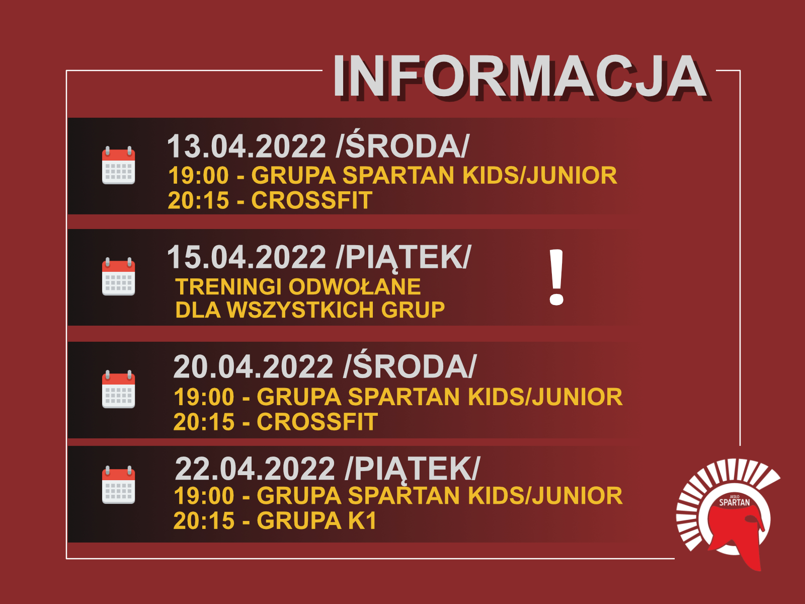 Proszę zapoznajcie się z powyższą rozpiską treningów.
