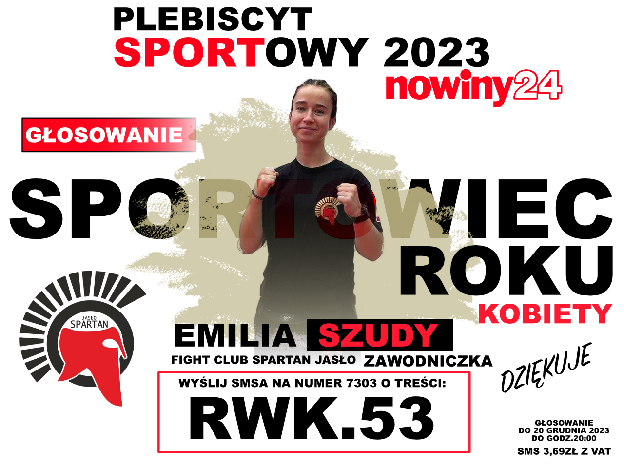 Wyślij smsa na numer 7303 o treści: RWK.53