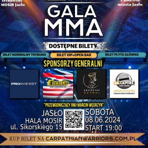 Już 8 czerwca 2024 roku w Jaśle na Hali MOSiR odbędzie się 14 Gala MMA!! W Gali zawalczą również nasi zawodnicy w formule K-1. EMILIA SZUDY GABRIEL SZKOŁA MATEUSZ OPAŁKA ZAPRASZAMY. Bilety dostępne na stronie organizatora carpathianwarriors.com.pl oraz do kupienia w naszym klubie.!! Read More…